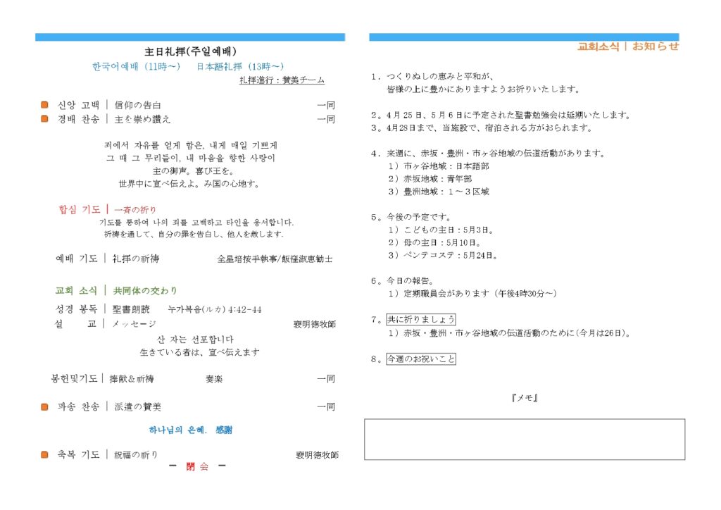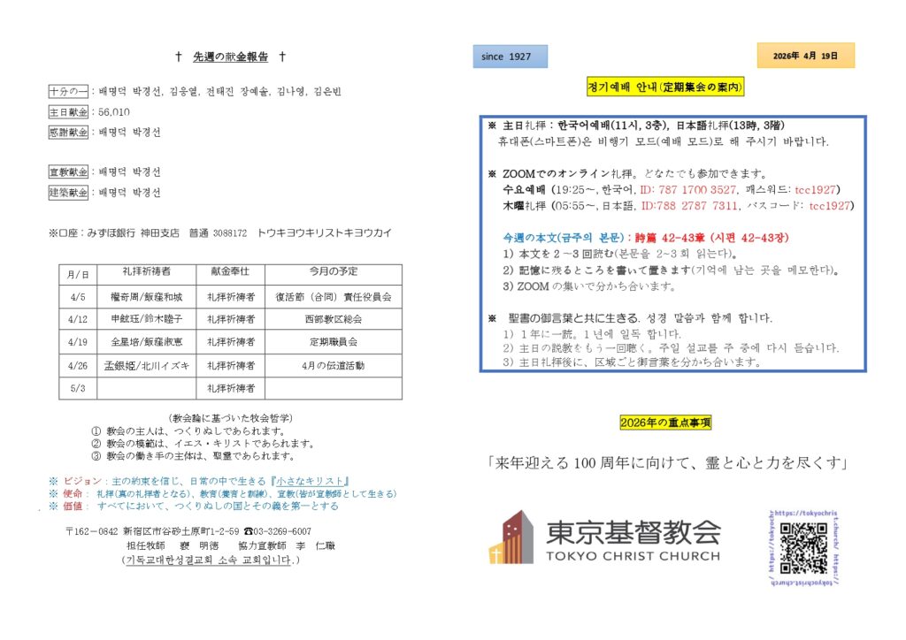 동경기독교회 2026-04-182026-04-18 교회소식
